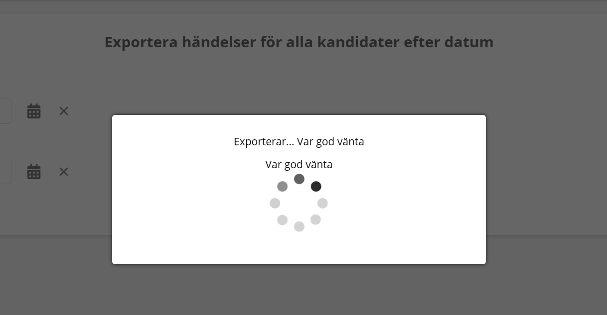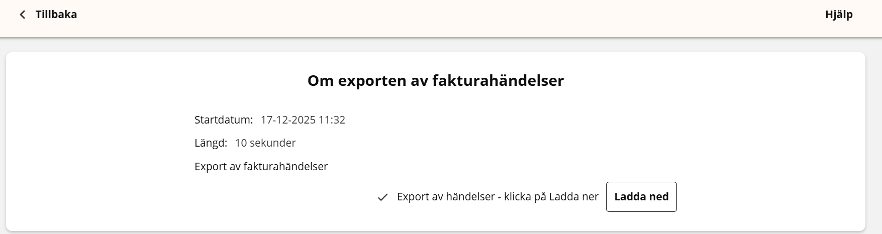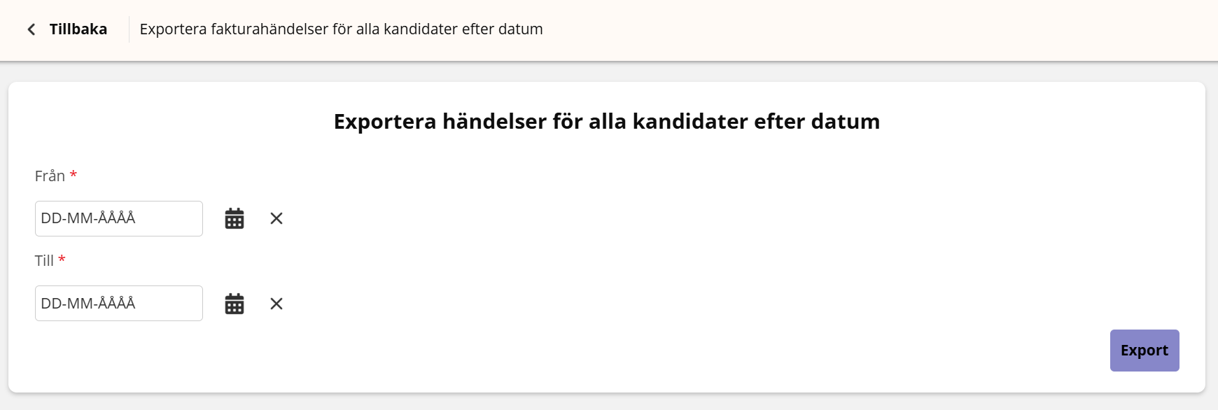 - Klicka på Exportera fakturahändelser för att ange ett datumintervall.