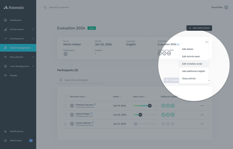 Customize assessment invitation of specific Talent Management activities
