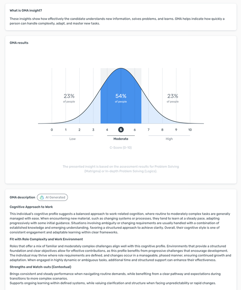 The new GMA section introduces a cognitive perspective that complements the existing personality and valuesinsights.