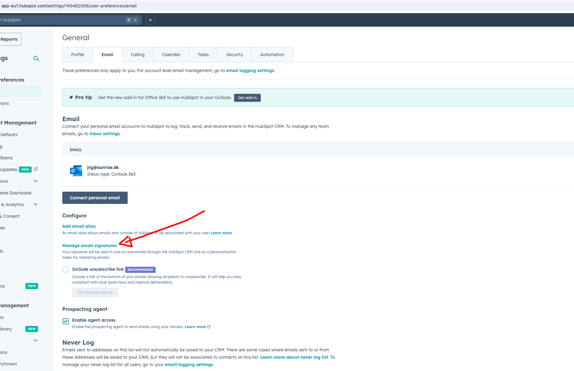 For Outlook desktop users, you may need to install the HubSpot Office 365 add-in.