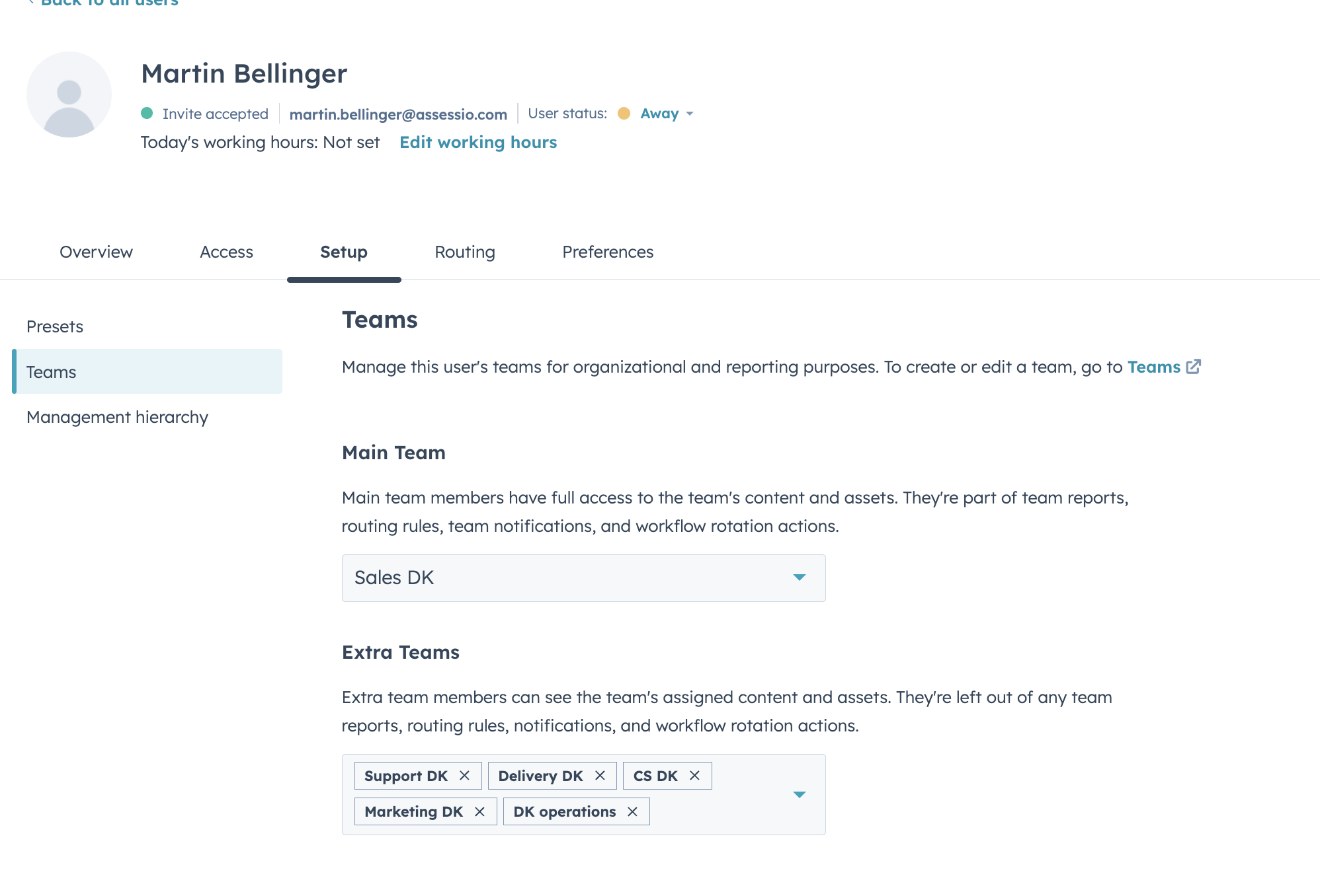 Add the right team - please note if the person needs to see companies owned by multiple teams, they should be added here: