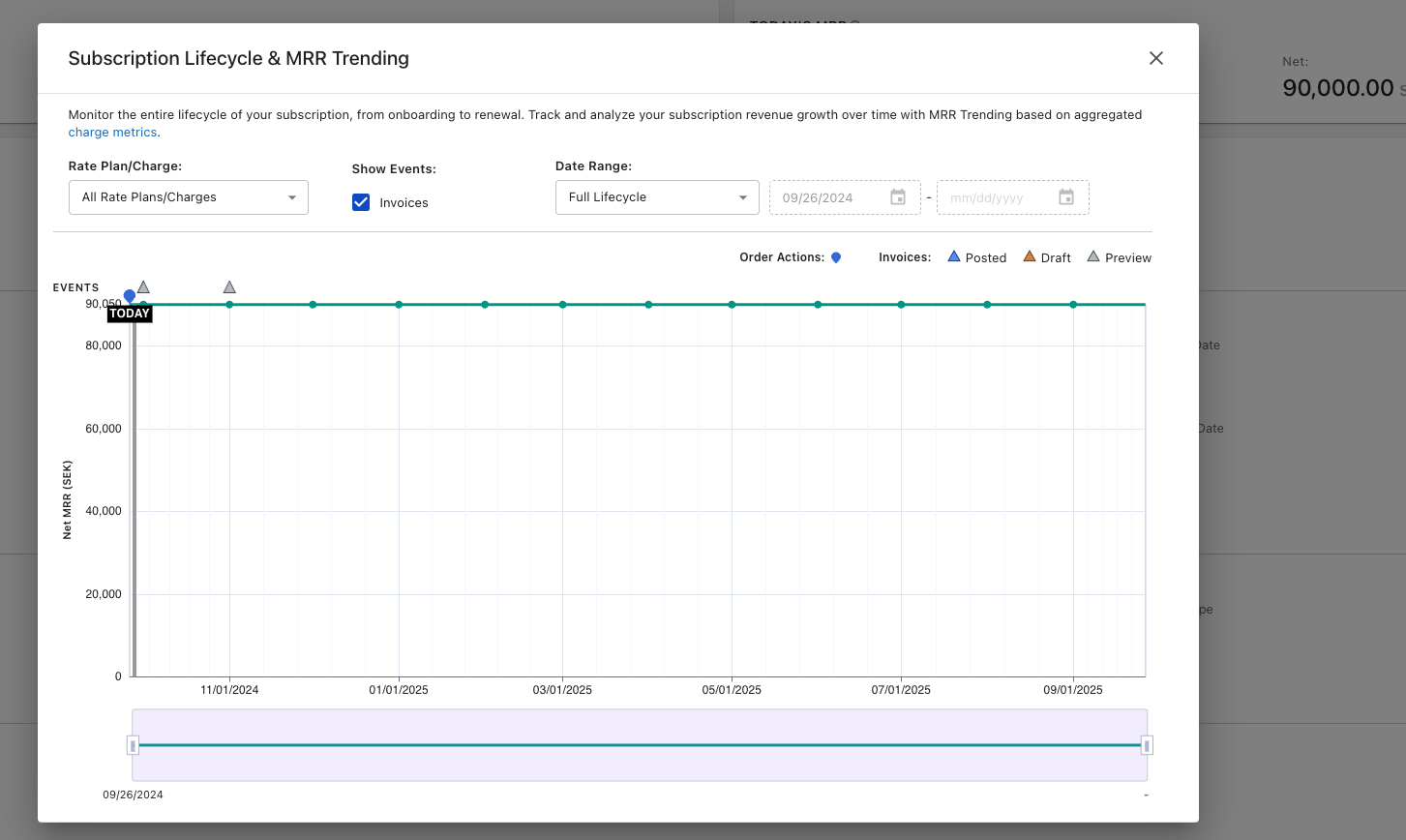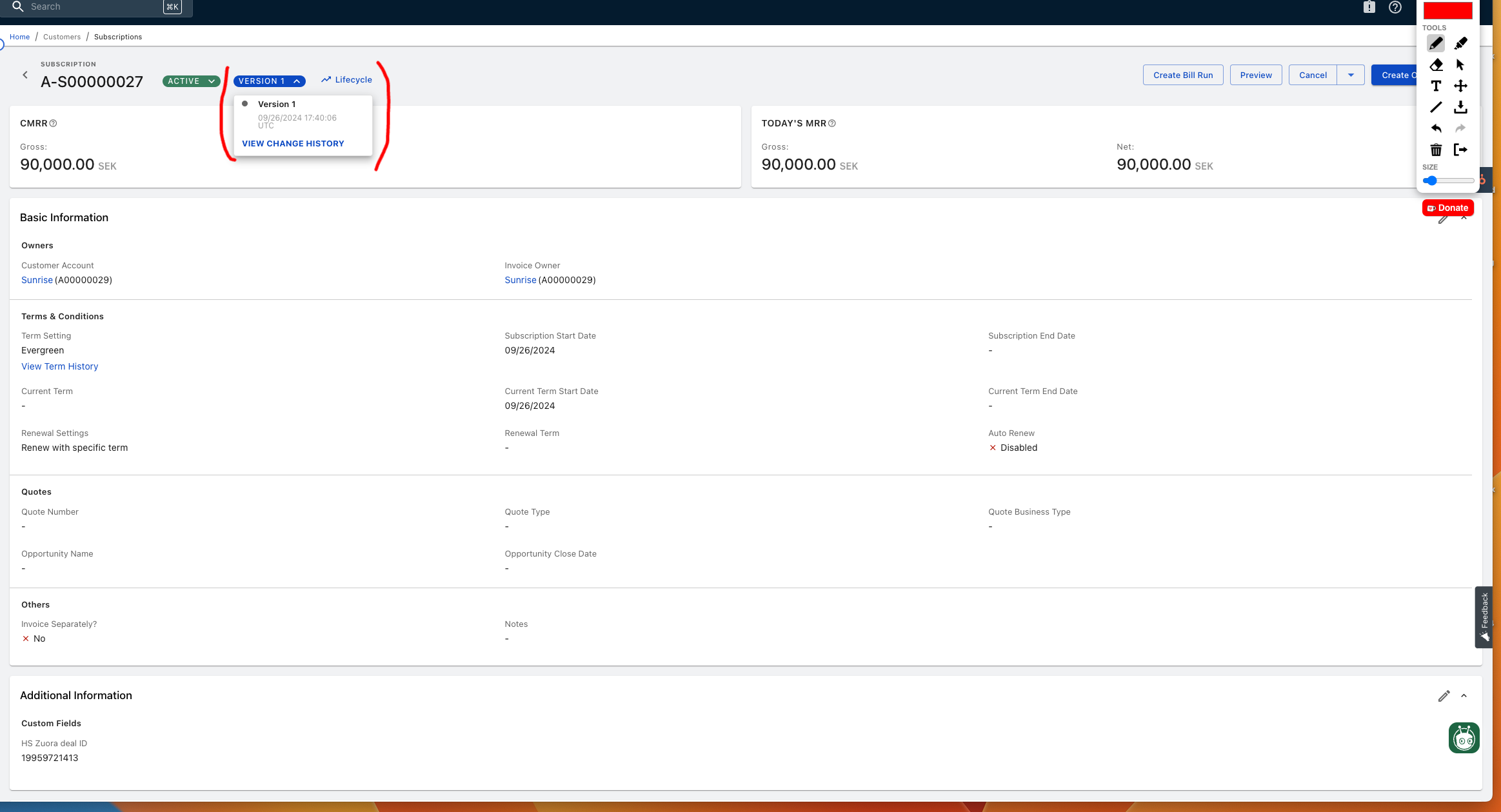 See screenshot example of the Zuora versioning/lifecycle stage of a subscription