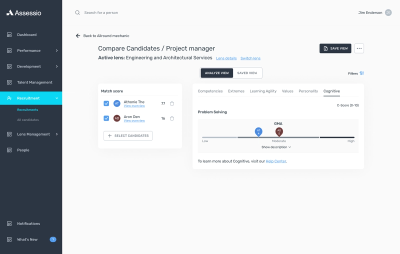 We are now introducing distinct tabs to visualize Personality and Cognitive insights of candidates in the Recruitment Compare page. These insights were grouped initially in the Potential tab. There has not been any change in the content of the insights itself.