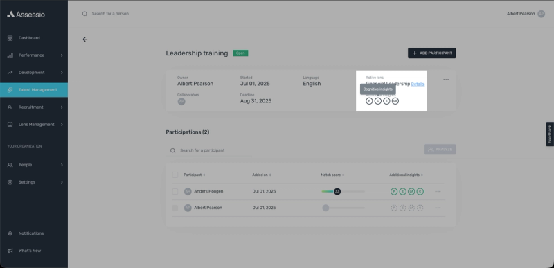 We have introduced an improved way to access key insights within Talent Management Activities. We’ve now separated Personality and Cognitive information into distinct tabs, ensuring that each set of insights is recognized as a distinct construct - making it easier for you to appreciate their unique value and providing a dedicated space for you to review and reflect on each dimension in its proper context.