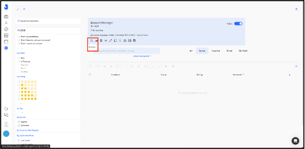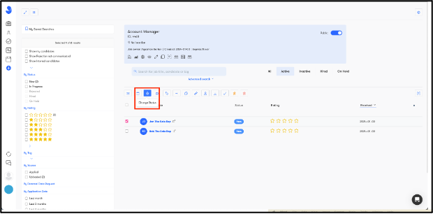 If the user is not ready to invite the candidate as yet, they can select “New” and the candidate will be created. When they user is ready to invite the candidate, they can change the candidate’s status by selecting the candidate and selecting “Change status”.