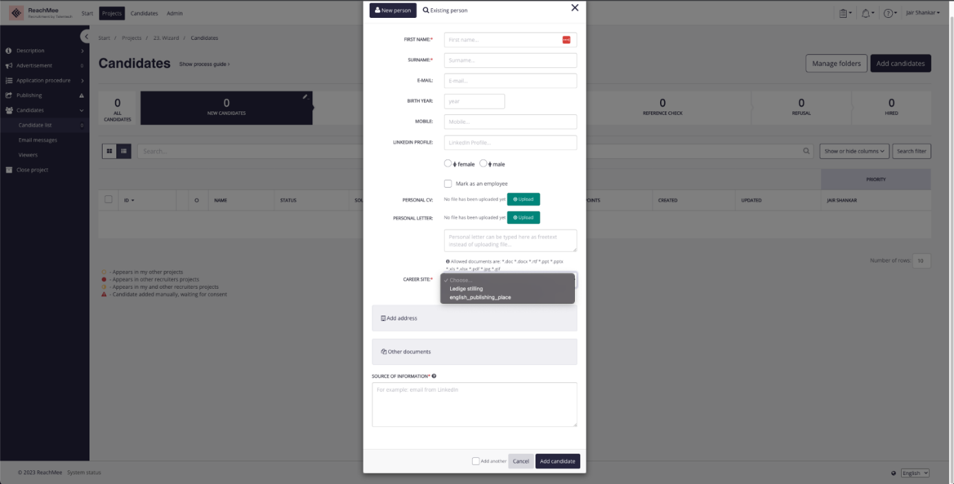 In ReachMee a recruiter creates what is called a “Project”. General information needs to be filled in by the user, which they will be familiar with, such as organization, project name, number of positions, etc. Once the project is created, the recruiter is able to fill in further settings.