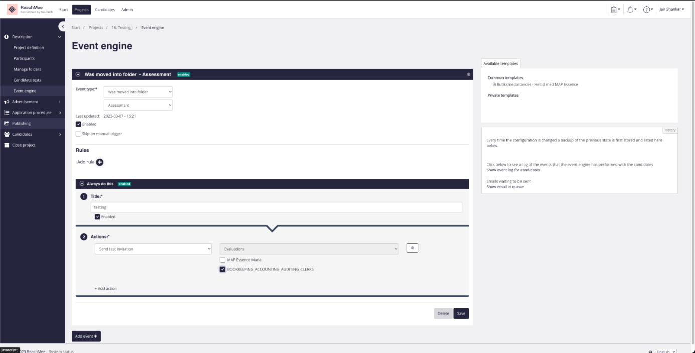 In the recruitment process recruiters can add triggers to define where the candidates should be added to the Assessio platform in order to receive the assessments.